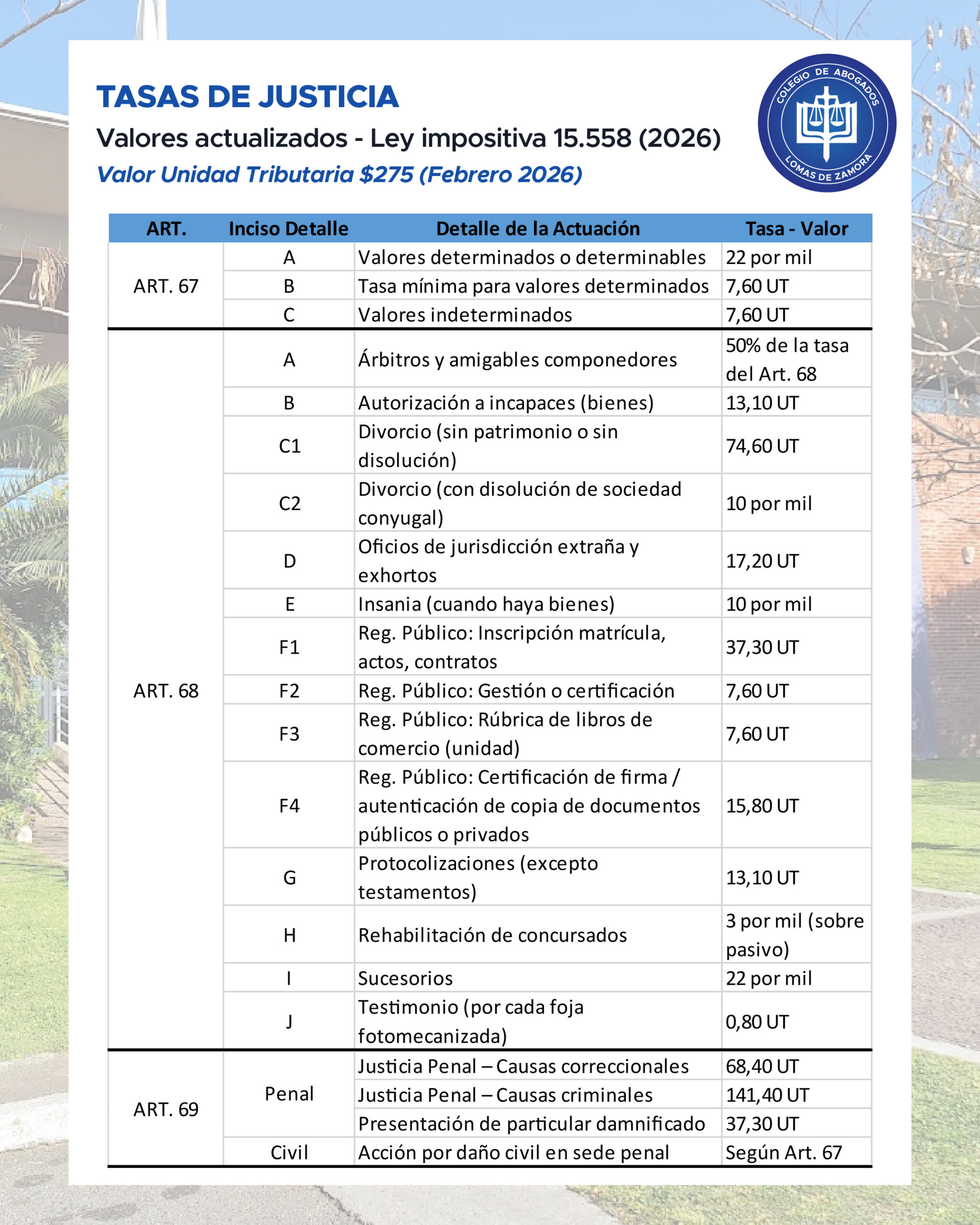 Valores Tasa de Justicia